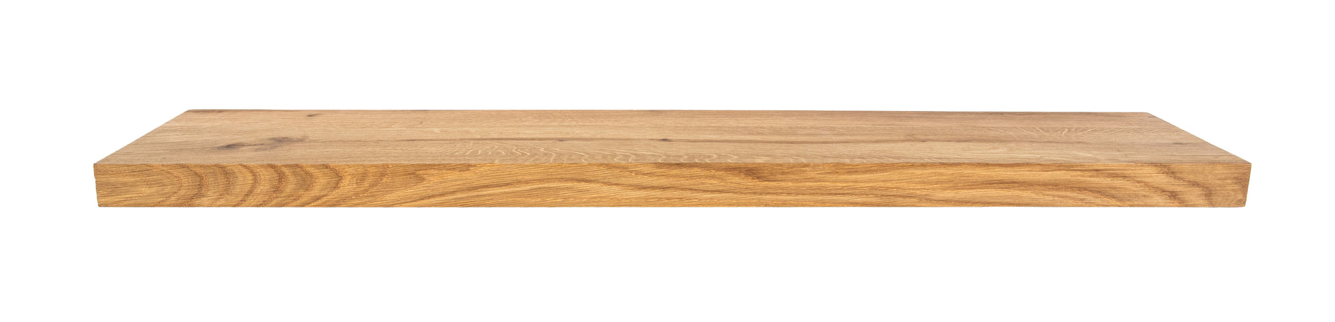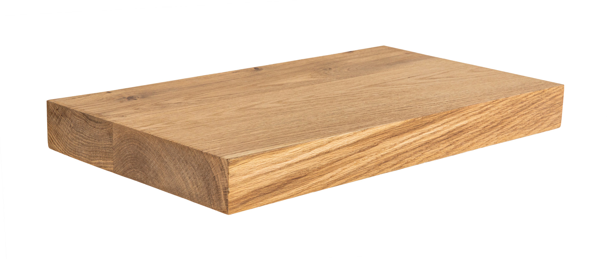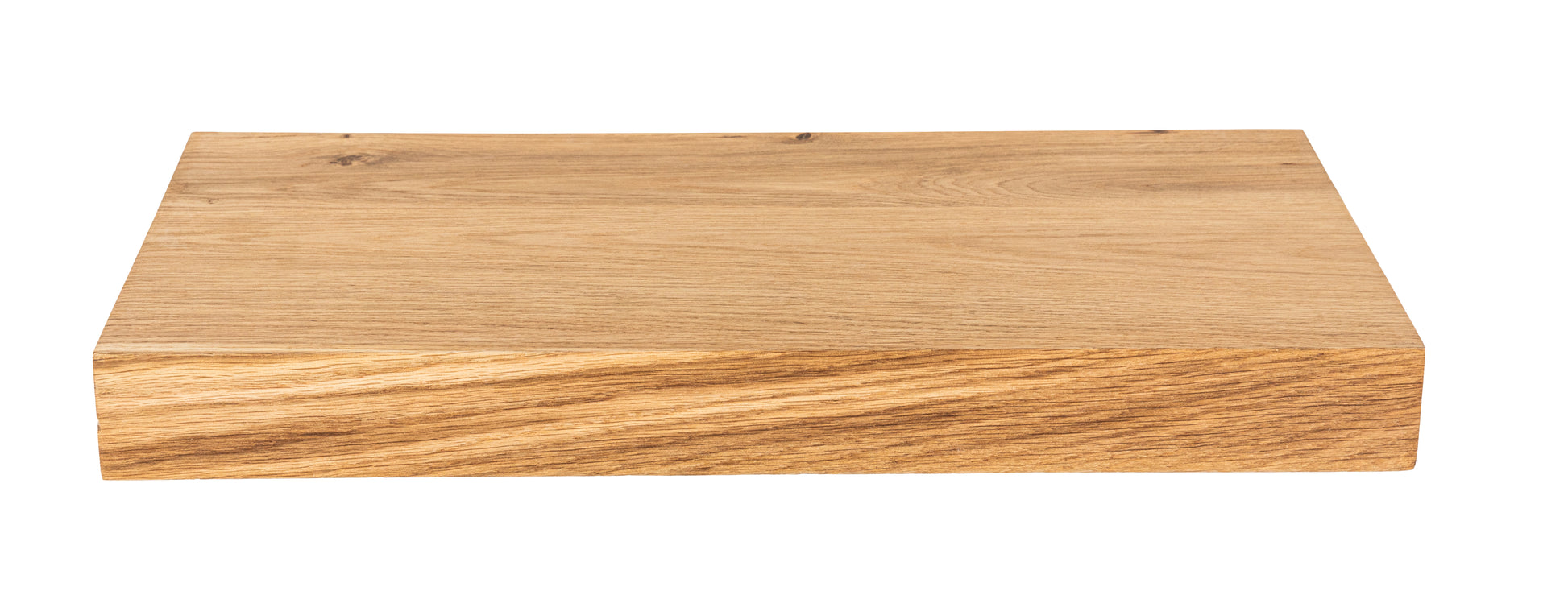 Klasikinė ąžuolinė lentyna lygiais kraštais.