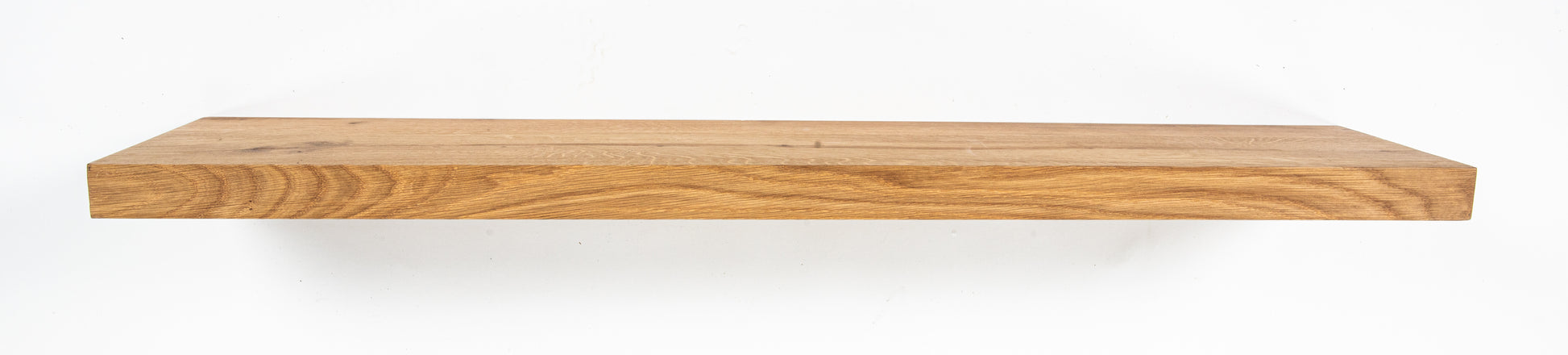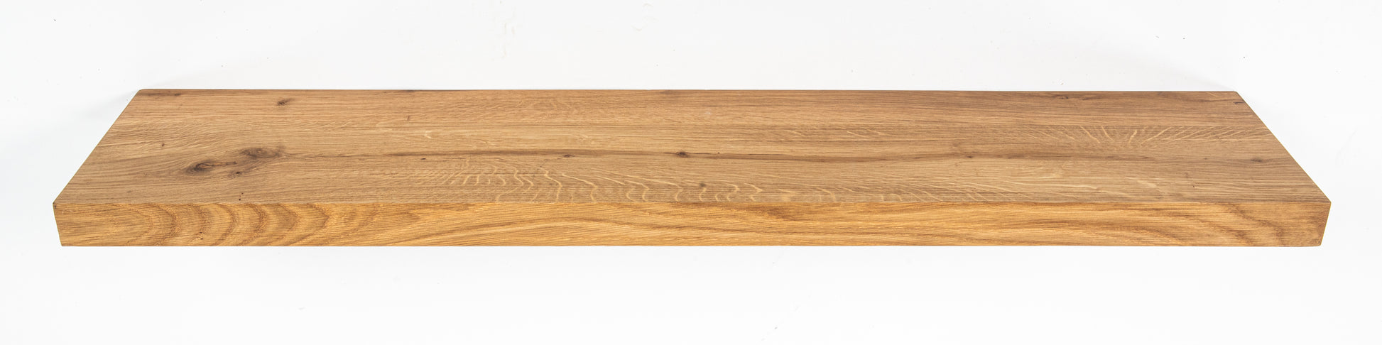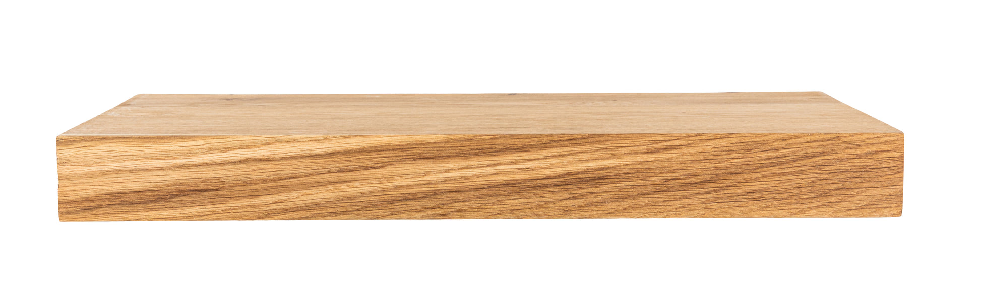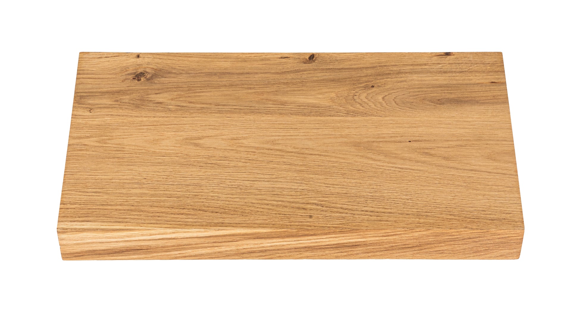 Klasikinė ąžuolinė lentyna lygiais kraštais.
