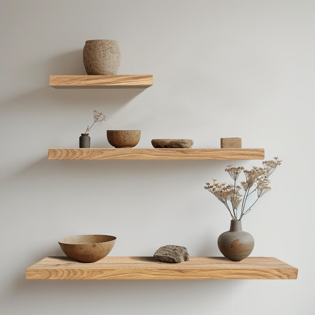 Ąžuolinė sieninė lentyna MURUM, lygus kraštas