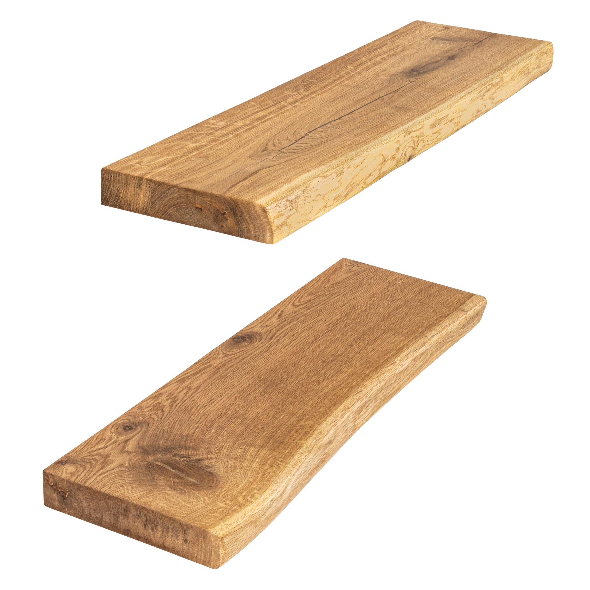 Ąžuolinė sieninė lentyna MURUM, natūralus kraštas