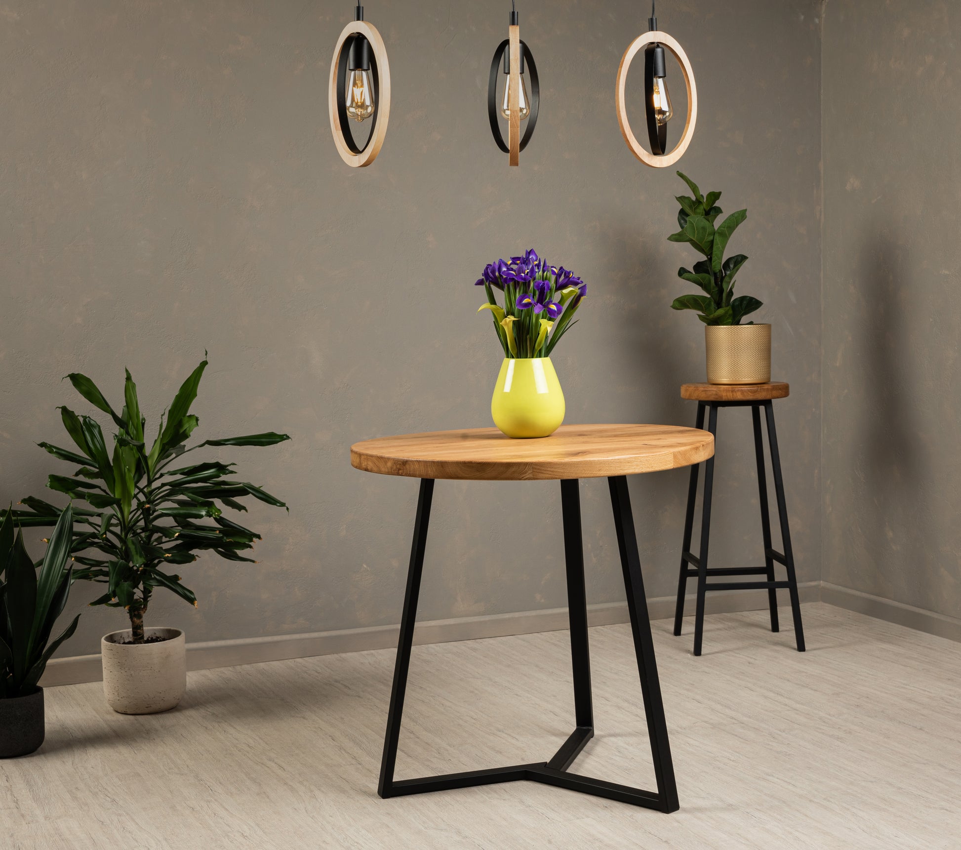 Ąžuolinis apvalus stalas OMEGA + FLORA kojos