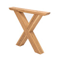 Medinės stalo kojos X yra 46 cm aukščio ir idealiai tinka kavos ir žurnaliniams staliukams. Maksimalus stalviršio ilgis 1,20 m. Lengvai tvirtinamos ir atlaikančios didelį svorį. Ąžuolo mediena yra padengta natūraliu bespalviu aliejumi ir, prireikus, gali būti lengvai atnaujinama namų sąlygomis.